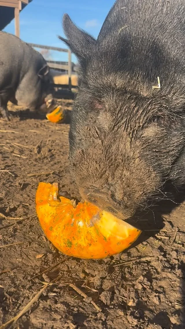We have 7 goats living at the Sanctuary. Ronnie and Reggie, our biggest goats, were the first mammalian residents and definitely the friendliest beings that call the Sanctuary home, it’s almost impossible to go into their paddock without being pulled in for cuddles.